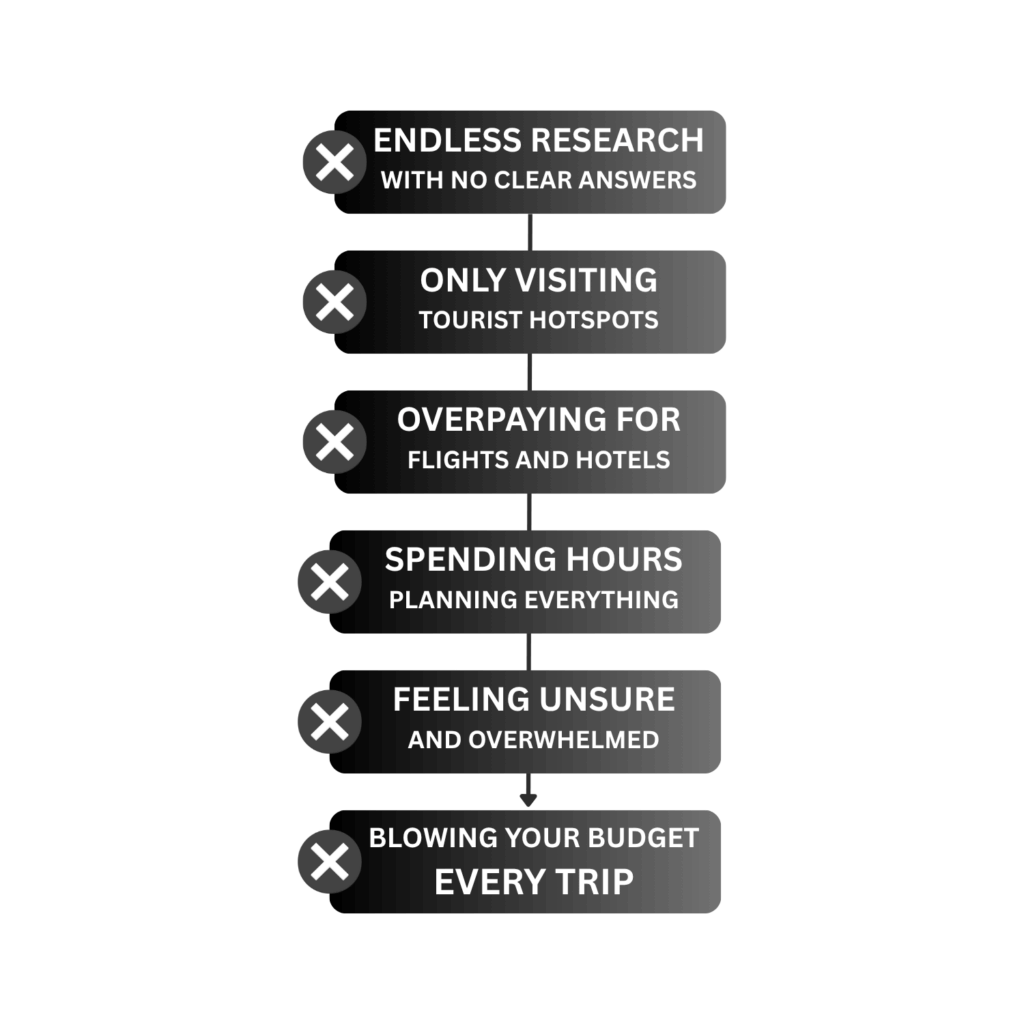 Spending countless hours researching flights, scrolling through travel blogs, comparing prices, and trying every “budget travel hack” I could find on the internet.