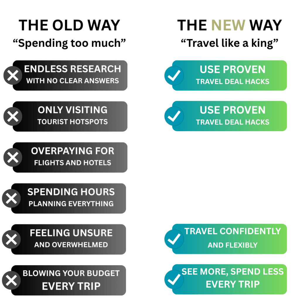 Because you’ll have a proven system that gets you cheap flights, hidden gems, and premium experiences at backpacker prices.